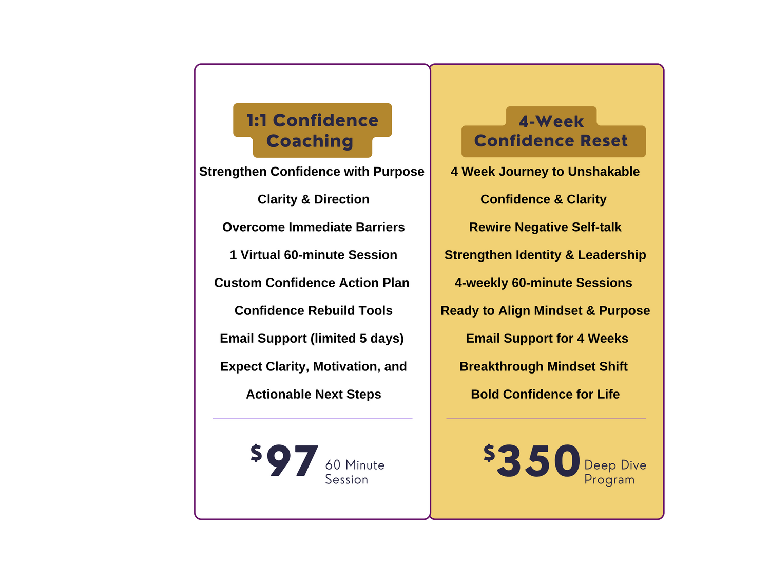 Join ProgramA deep-dive confidence coaching program designed to eliminate negative self-talk and grow bold identity over four weekly sessions.